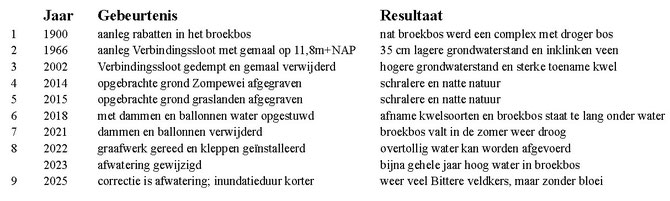 In 2018 werd getracht meer water in de Zumpe vast te houden met dammen en ballonnen in sloten, teneinde de toen erg droge jaren te overbruggen (5 en 6). Door sterke neerslag in de volgende jaren werd met de ingreep bereikt dat het gehele broekbos gedurende een groot deel van het jaar was geïnundeerd. Veel te lang voor het ecosysteem broekbos en zeker voor de kwelrijke groeiplaats van Bittere veldkers. De ballonnen en dammen in de sloten werden dan ook weer snel verwijderd (7). Bittere veldkers verscheen vegetatief weer met flinke aantallen.